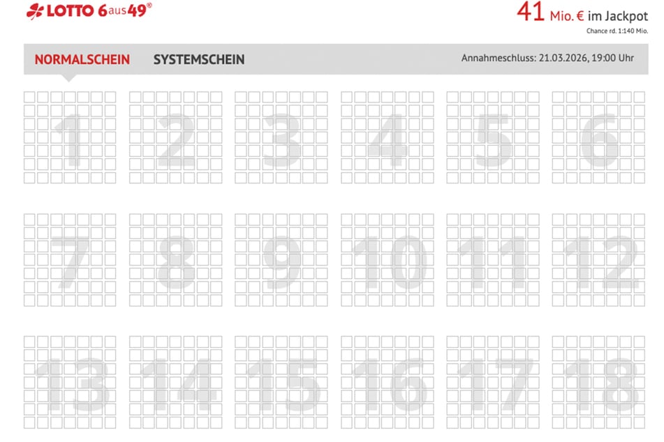 Samstag (21.3.): 41 Millionen Euro im Jackpot bei LOTTO 6aus49