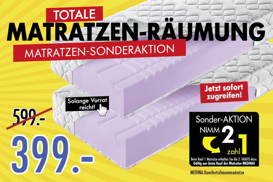 Solange der Vorrat reicht, bekommt Ihr bei Mobile Wohnspass in Sulzbach zwei Matratzen zum Preis von einer.*²