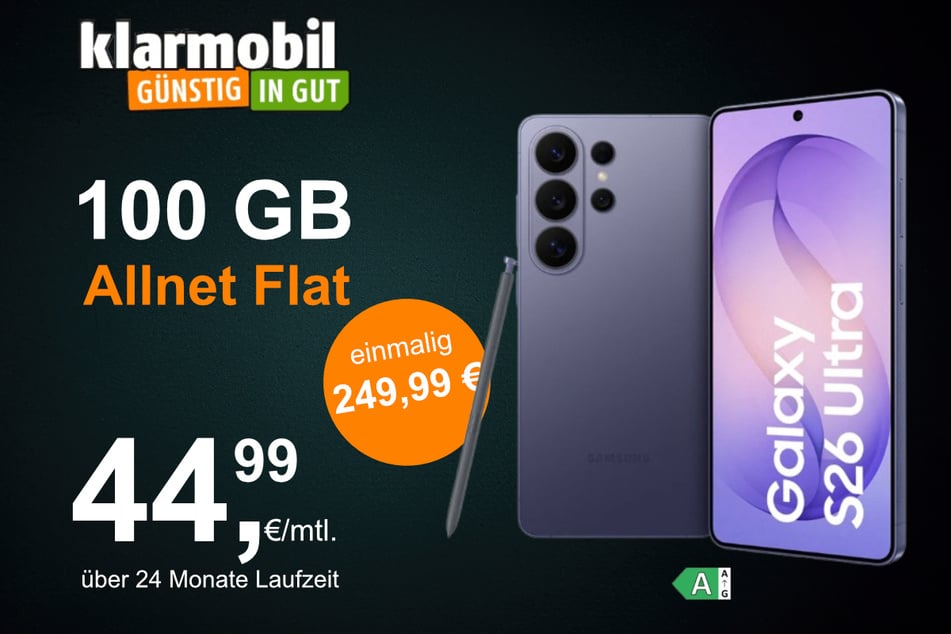 Eines der Highlights ist das brandneue Samsung Galaxy S26 (512 GB), welches es bei Klarmobil zum Marktstart für nur 29,99 Euro pro Monat inklusive 40 GB Tarif gibt.