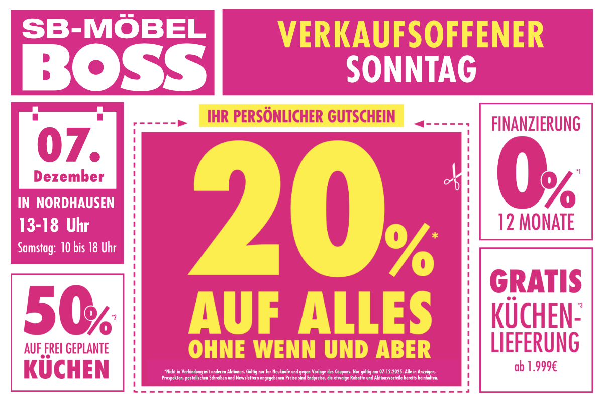 Angebote zur Sonntagsöffnung (7.12.) bei Möbel Boss Nordhausen