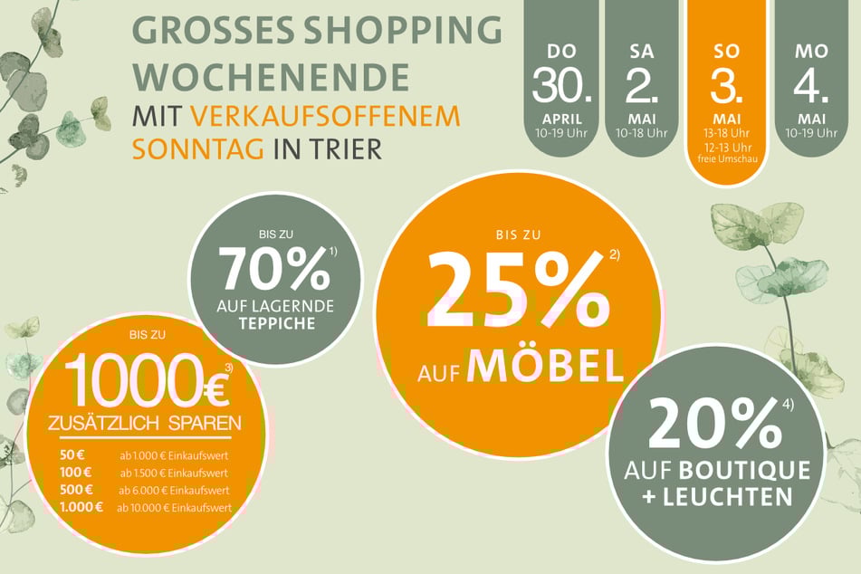 Bei Möbel Ehrmann in Trier wird mit einem mega Shopping Wochenende in den Mai getanzt. Was das bedeutet?