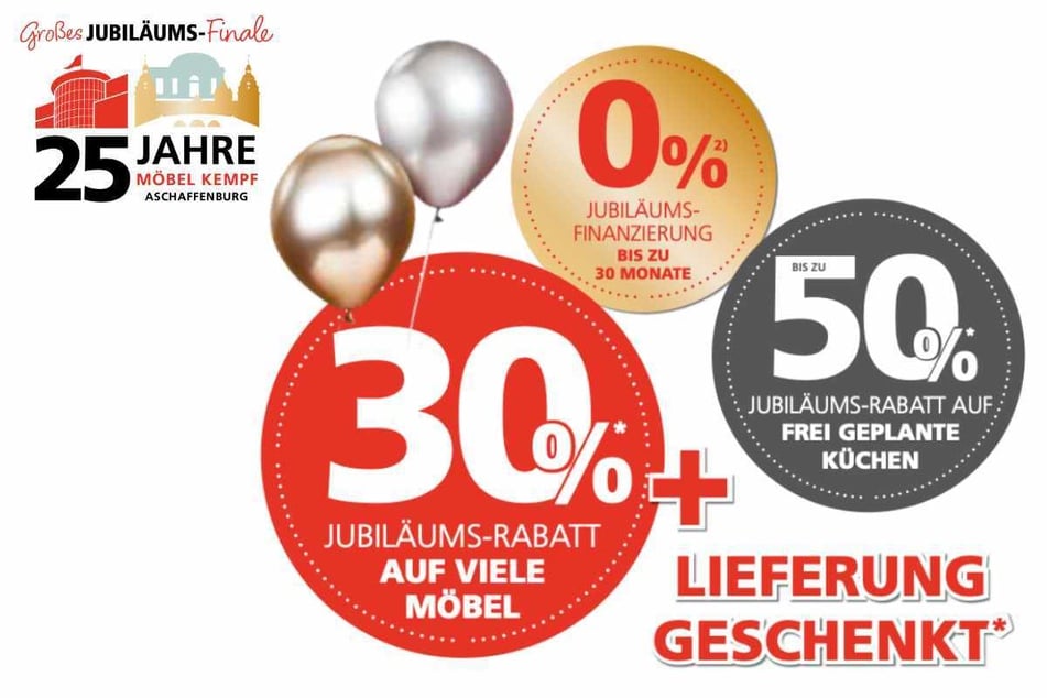 Bei Möbel Kempf in Aschaffenburg wird natürlich weiterhin ordentlich das 25. Jubiläumsjahr gefeiert und dabei dürfen diese Top-Angebote nicht fehlen: