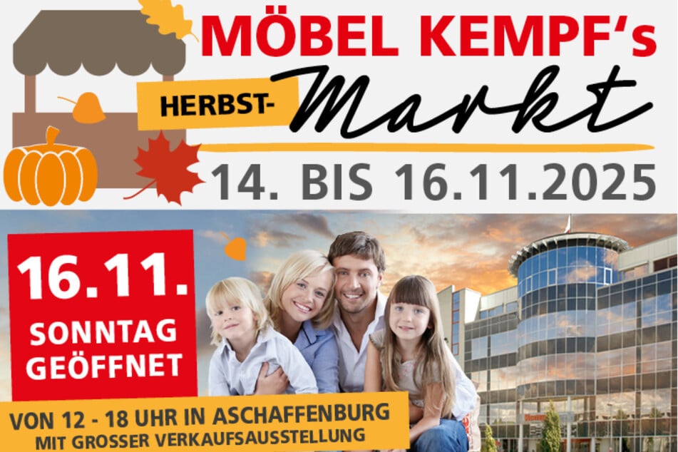 Aschaffenburg – Bei Möbel Kempf in Aschaffenburg ist ganz schön was los! Von Freitag (14.11.) bis Sonntag (16.11.) findet der große Herbstmarkt mit tollen Aktionen statt.