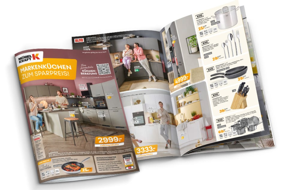 1)+2)+3) Der Betrag wird bei Vorlage des Gutscheins bei Ihrem nächsten Möbel Kraft Einkauf ab einem Warenwert von 100€1/1.800€2 bzw. 3.500€3 verrechnet. Der angegebene Gutscheinwert ist innerhalb des Aktionszeitraums (19.11. bis einschließlich 02.12.2025) 1x pro Kunde und Kaufvertrag einsetzbar und nicht übertragbar. Barauszahlung nicht möglich, nicht kombinierbar mit anderen Aktionsvorteilen, nicht nachträglich für bereits gekaufte Ware einsetzbar. Ausgenommen sind bereits reduzierte Möbel, Küchen, Teppiche, Matratzen sowie Artikel der Marken Neuhaus, Fischer Honsel, Trio, TK Lighting, Bankamp, Spotlight, ASA, Alfi , Berndes, Justinus Brenger, GEFU, Mepal BV, Nachtmann, Leonardo, WMF, Seltmann Weiden, Silit, Spiegelau, Thermos, Schöner Wohnen, Schöner Wohnen Kollektion, Joop!, Esprit, Tom Tailor, Apelt, Gardisette, Fuggerhaus, Ibena, Biederlack, Bugatti, Florentiner/Wetzel, Saum&Viebahn, Herding, Weckbrodt, Neutex, Estella Ateliers, Janine, Kaeppel, Kleine Wolke, Vossen, Musterring, Sansibar Sylt, Villeroy & Boch. Ebenfalls ausgenommen sind als Tief- oder Kraftpreis gekennzeichnete Artikel, Gartenmöbel, Gutscheine, Bücher und alle Elektroartikel, sowie in dieser Anzeige beworbene Ware. Alle Prospekte finden Sie unter www.moebel-kraft.de.