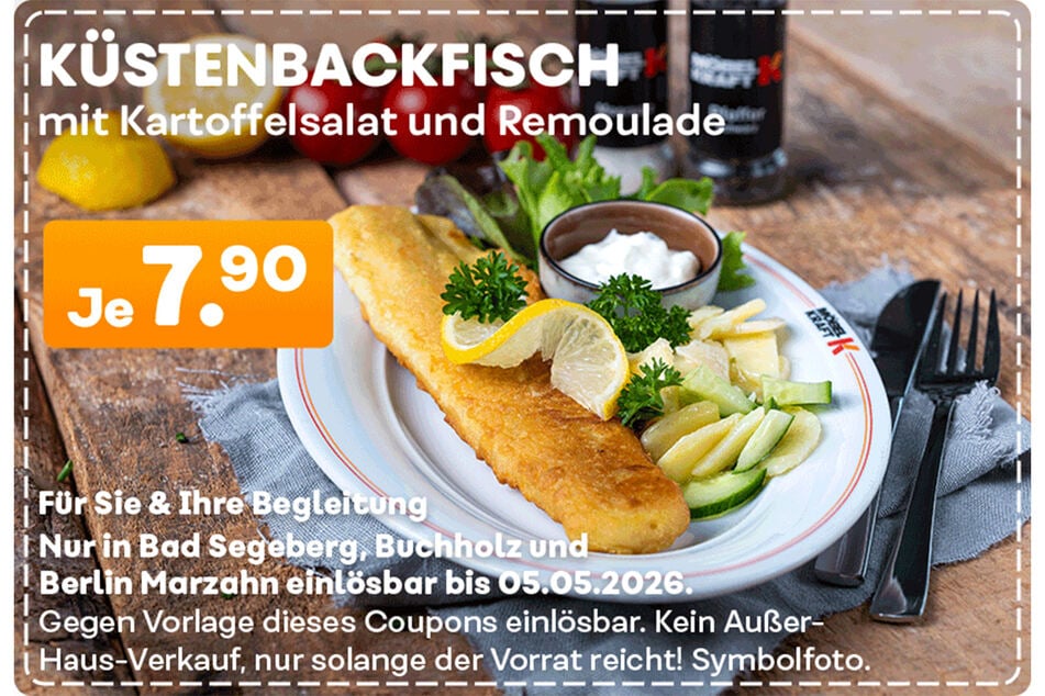 für je 8,90 Euro - Küstenbackfisch mit Kartoffelsalat und Remoulade