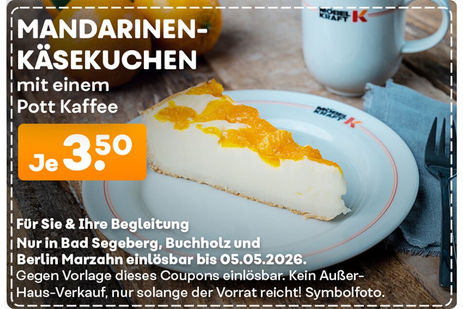 für je 7,90 Euro - Mandarinen-Käsekuchen mit einem Pott Kaffee