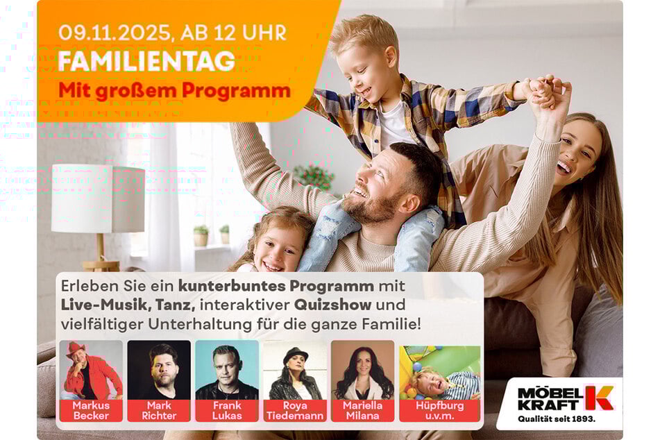Feiert mit Möbel Kraft die große Partytour am Sonntag (9.11.) von 12 bis 17 Uhr. Mit dabei sind Markus Becker, Mark Richter, Frank Lukas, Roya Tiedemann, Mariella Milana und Andy Andress.