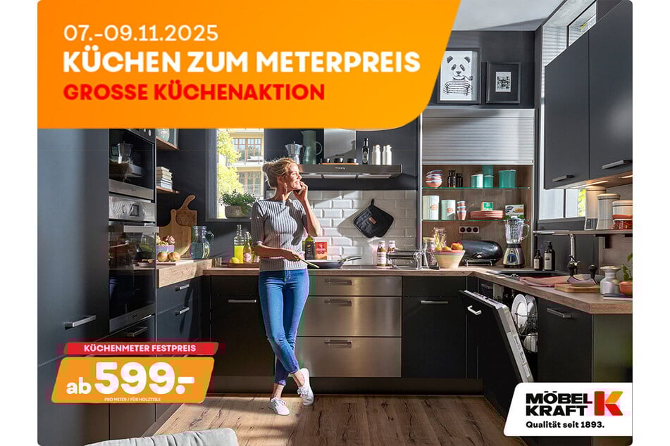 1) 2) 3) 4) Der Betrag wird bei Vorlage des Gutscheins bei Ihrem nächsten Möbel Kraft Einkauf ab einem Warenwert von 60€ (1)/1.800€ (2)/3.500€ (3) bzw. 5.000€ (4) verrechnet. Der angegebene Gutscheinwert ist innerhalb des Aktionszeitraums (05.11. bis einschließlich 11.11.25) 1x pro Kunde und Kaufvertrag einsetzbar und nicht übertragbar. Barauszahlung nicht möglich, nicht kombinierbar mit anderen Aktionsvorteilen, nicht nachträglich für bereits gekaufte Ware einsetzbar. Ausgenommen sind bereits reduzierte Möbel, Küchen, Teppiche, Matratzen sowie Artikel der Marken Neuhaus, Fischer Honsel, Trio, TK Lighting, Bankamp, Spotlight, ASA, Alfi , Berndes, Justinus Brenger, GEFU, Mepal BV, Nachtmann, Leonardo, WMF, Seltmann Weiden, Silit, Spiegelau, Thermos, Schöner Wohnen, Schöner Wohnen Kollektion, Joop!, Esprit, Tom Tailor, Apelt, Gardisette, Fuggerhaus, Ibena, Biederlack, Bugatti, Florentiner/Wetzel, Saum&Viebahn, Herding, Weckbrodt, Neutex, Estella Ateliers, Janine, Kaeppel, Kleine Wolke, Vossen, Musterring, Sansibar Sylt, Villeroy & Boch. Ebenfalls ausgenommen sind als Tief- oder Kraftpreis gekennzeichnete Artikel, Gartenmöbel, Gutscheine, Bücher und alle Elektroartikel, sowie in dieser Anzeige beworbene Ware. Alle Prospekte finden Sie unter www.moebel-kraft.de.