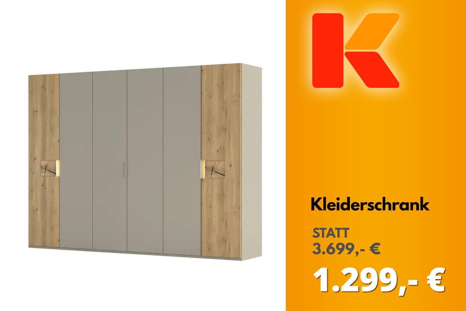 Darunter Wohnwände für 899 statt 1.489 Euro, Kleiderschränke für 1.299 statt 3.699 Euro und Sessel für 249 statt 399 Euro.