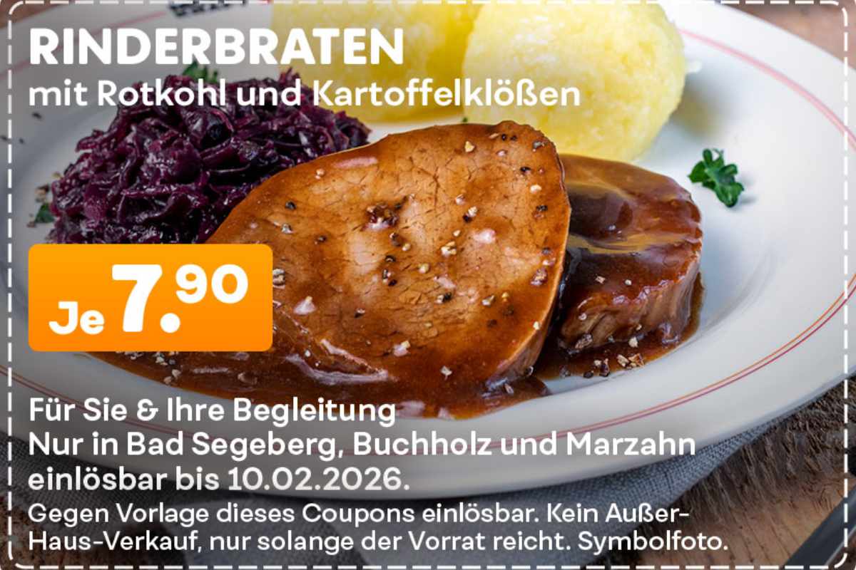 - Rinderbraten mit Rotkohl und Kartoffelklößen