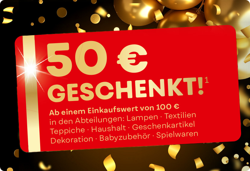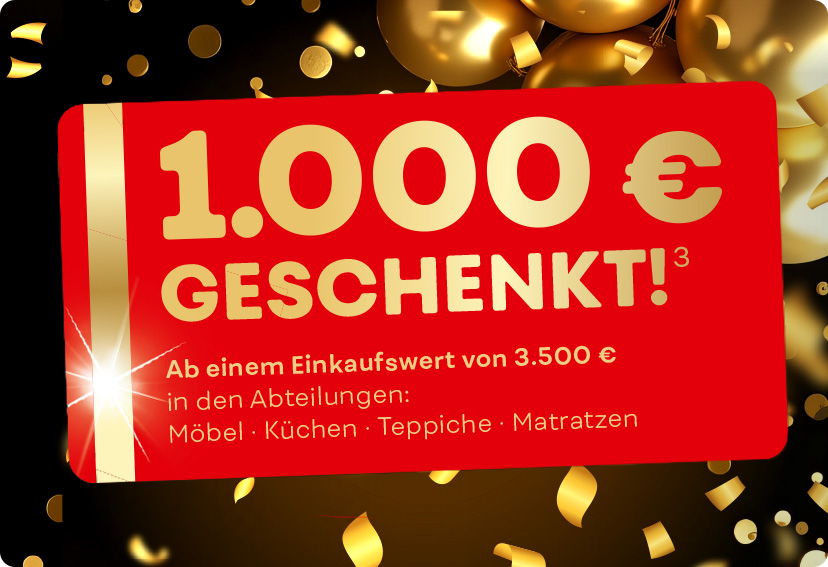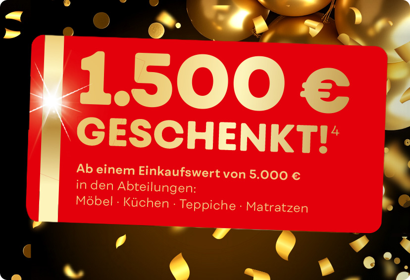 Nur noch für kurze Zeit bekommt Ihr beim Kauf von Möbeln, Küchen, Teppichen und Matratzen bis zu 1.500 Euro geschenkt.⁴