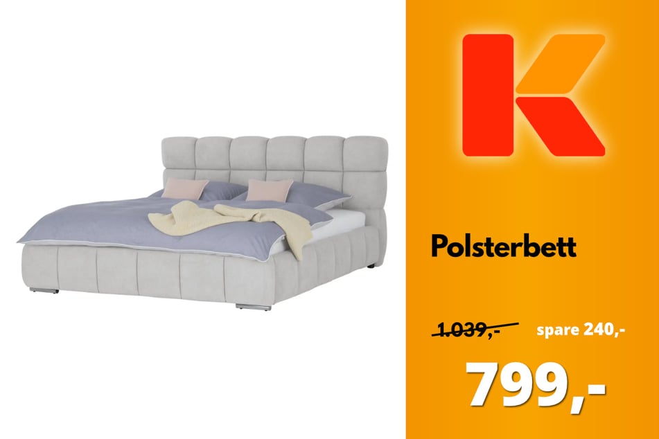 Mit dabei ist u. a. das moderne Polsterbett für nur 799 statt 1.039 Euro.