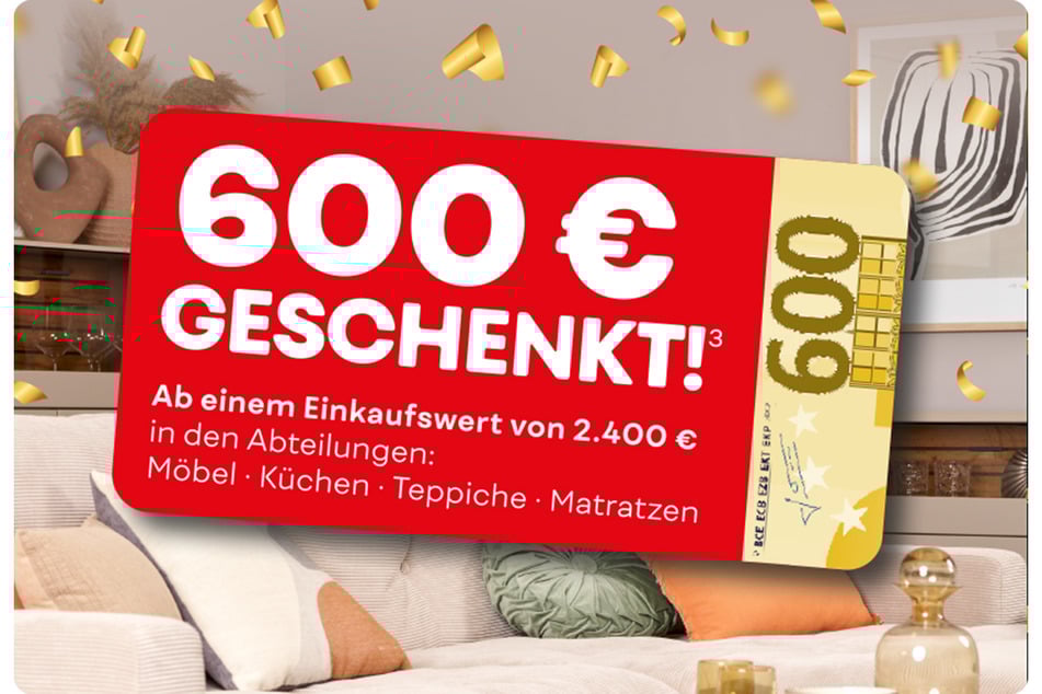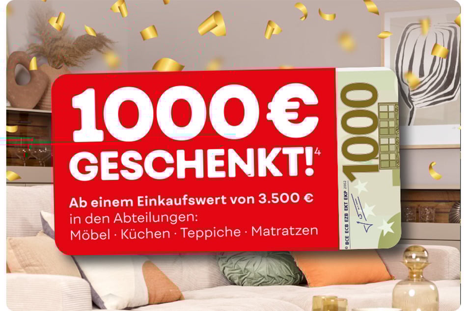 Beim Kauf von Möbel, Küchen, Matratzen, Teppiche oder Deko spart Ihr bis zu 1.000 Euro⁴.