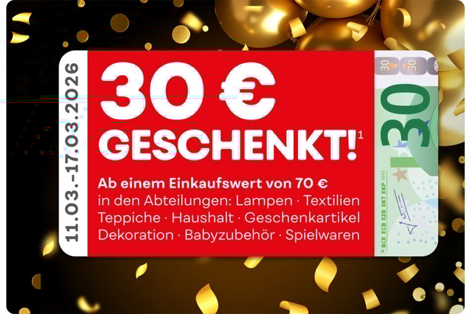 Auch in den Abteilungen Lampen, Textilien, Teppiche, Babyzubehör, Spielwaren, Haushalt, Deko und Geschenkartikel könnt Ihr sparen.