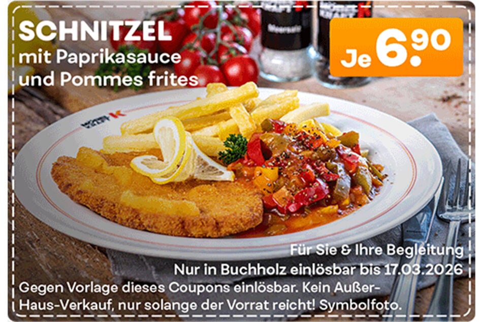 - Schnitzel mit Paprikasauce und Pommes frites