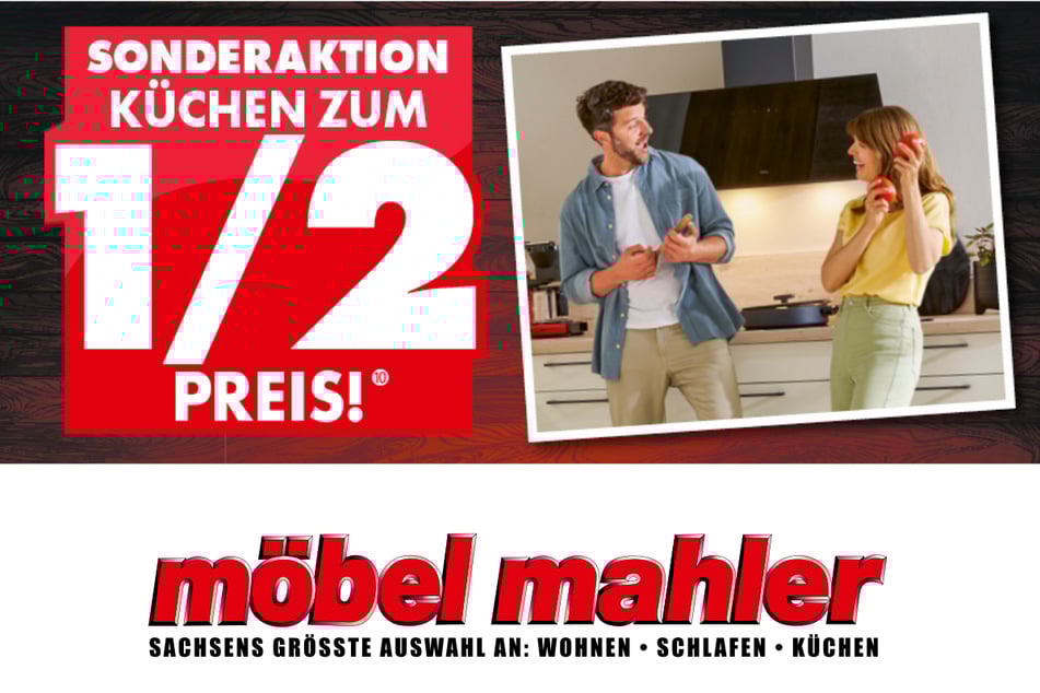 Wer eine neue Küche plant, kann sich bei Möbel Mahler auf eine weitere tolle Sonderaktion freuen. Aktuell gibt's Küchen nämlich zum halben Preis.¹⁰