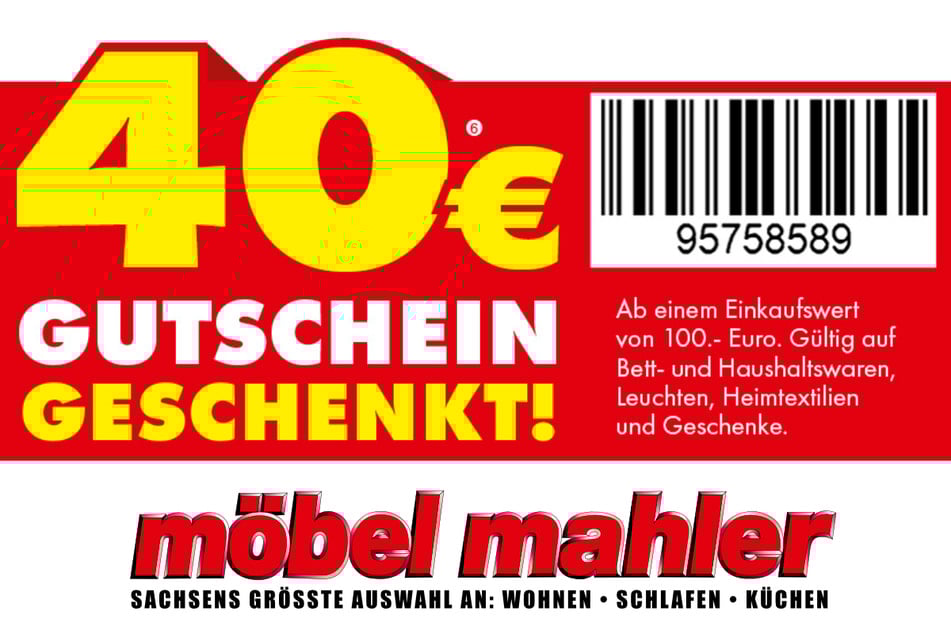 (6) Diesen Betrag verrechnen wir Ihnen bei Vorlage dieses Gutscheins bei Ihrem Möbel Mahler Einkauf ab einem Einkaufswert von 100,-€. Gutschein innerhalb des Aktionszeitraums nur einmal pro Kunde und Kaufvertrag einsetzbar. Ausgenommen von dieser Rabattaktion sind Möbel, Küchen, Matratzen, Gutscheine und Bücher sowie Artikel der Marken ASA Selection, Joop!, Leifheit, Leonardo, Silit, Villeroy & Boch, WMF, Paul Neuhaus und Trio Leuchten. Alle an der Aktion teilnehmenden Artikel in den Prospektbeilagen werden im Aktionszeitraum bereits reduziert angezeigt