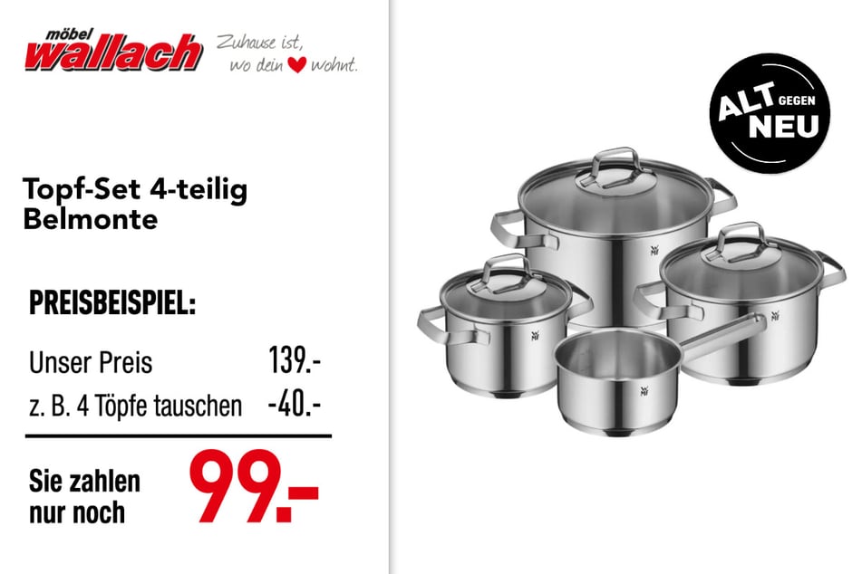 Ab Samstag (27.12.) läuft bei Möbel Wallach zudem eine Tauschaktion für alte Töpfe, Pfannen oder Besteck.