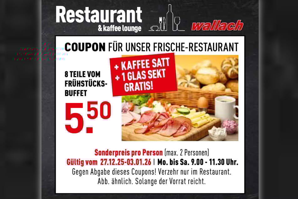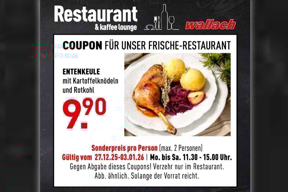 Im Prospekt findet Ihr gleich zwei Coupons, die im Möbel Wallach-Restaurant eingelöst werden können.