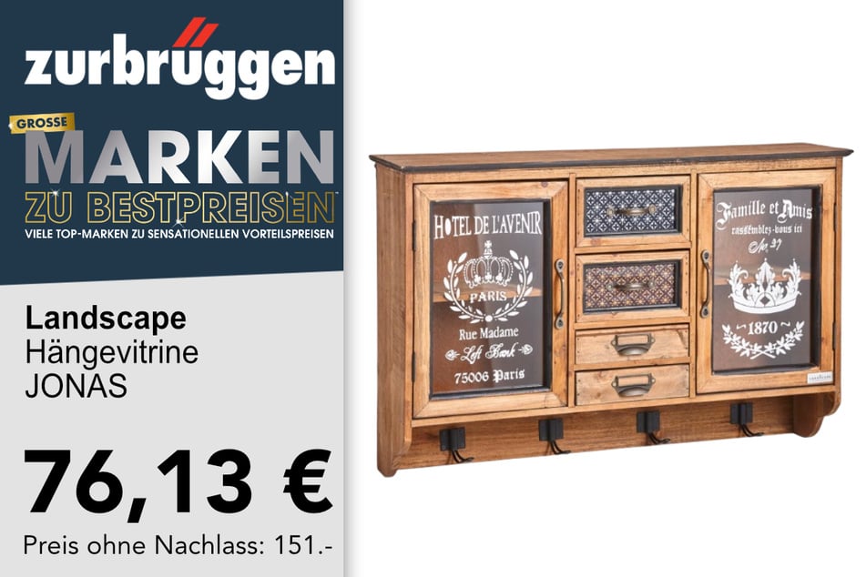 Die Landscape Hängevitrine JONAS für 76,13 Euro ist ein einzigartiger Blickfang im landhausorientierten Küchen- oder Essbereich.