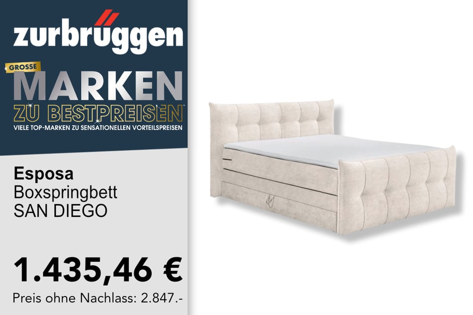 Zurbrüggen – Unter dem Motto "Große Marken zu Bestpreisen" steigen in den Zurbrüggen Wohnzentren jetzt starke Angebote mit bis zu 40 plus 19 Prozent Rabatt auf viele Möbel!