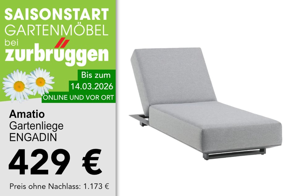 Die Amatio Gartenliege ENGADIN gibt's so zum Beispiel für nur 429 statt 1.173 Euro.