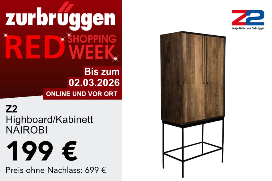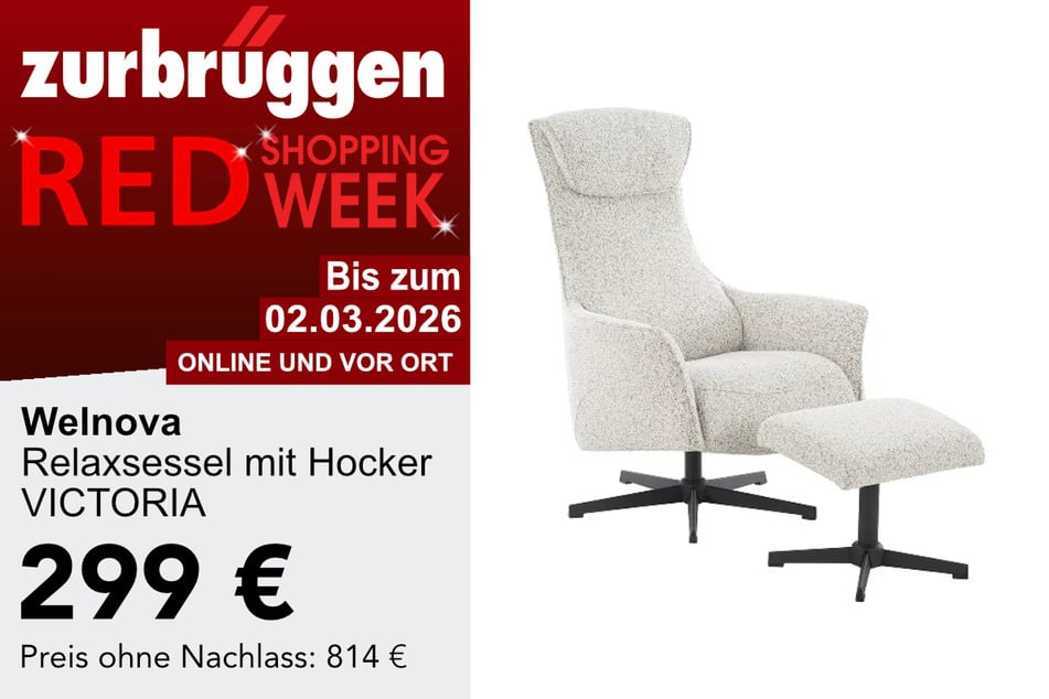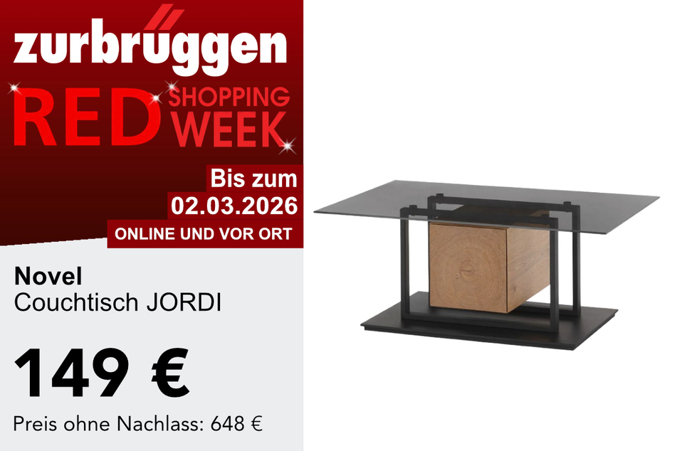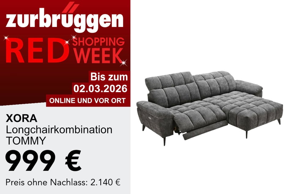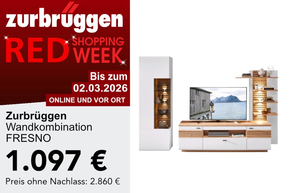 Zurbrüggen – Ab Samstag (14.2.) startet in den fünf Zurbrüggen-Wohnzentren die Red Shopping Week mit unschlagbaren Angeboten.