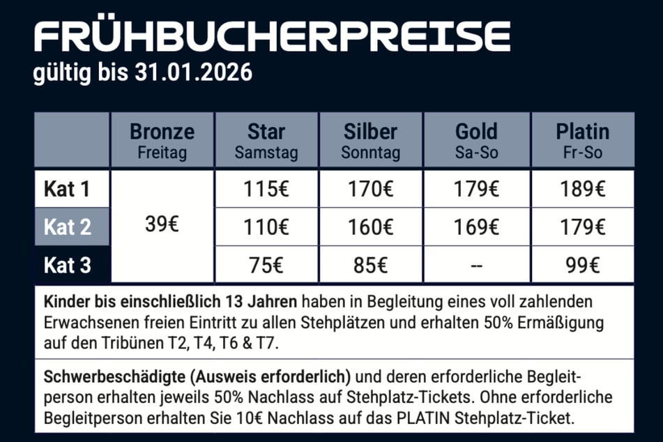 Ein besonderes Extra: Kinder bis einschließlich 13 Jahren haben in Begleitung eines Erwachsenen freien Eintritt zum gesamten Stehplatzbereich. Perfekt also, für Familien, die gemeinsam Motorsport erleben wollen.
