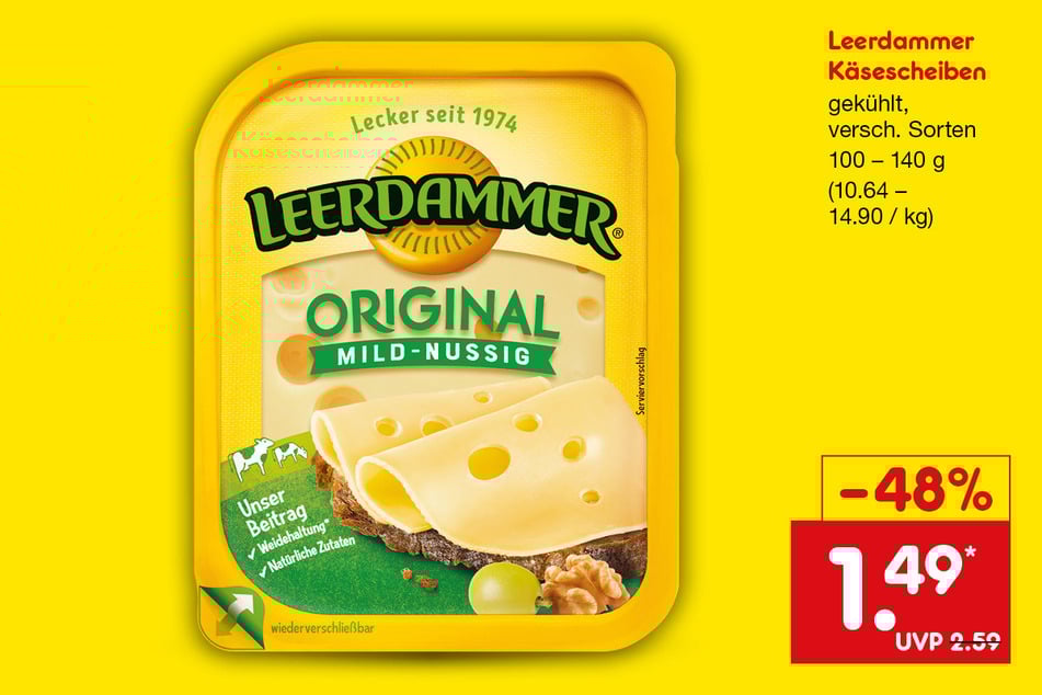 für 4,44 statt 5,55 Euro (-20%) - Leerdammer Käseschreiben