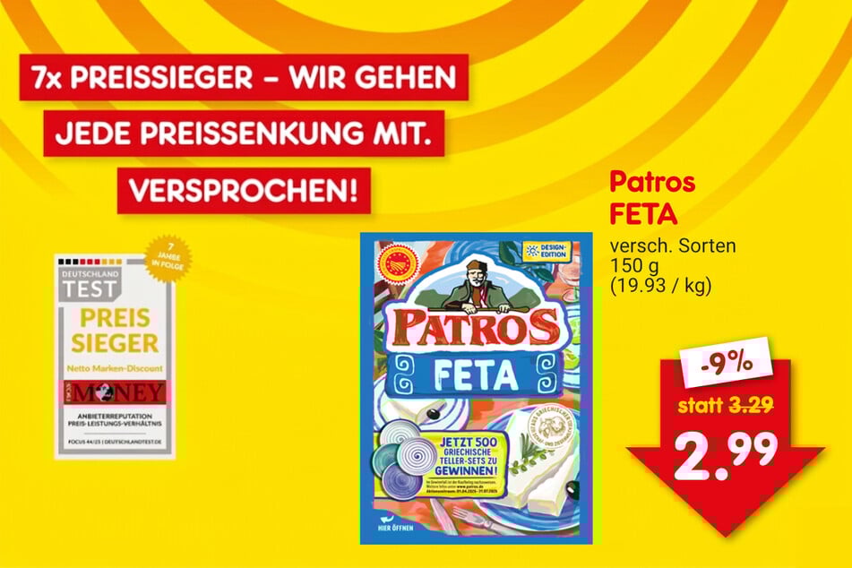 für 1,65 statt 2,45 Euro (-32%) - Patros FETA