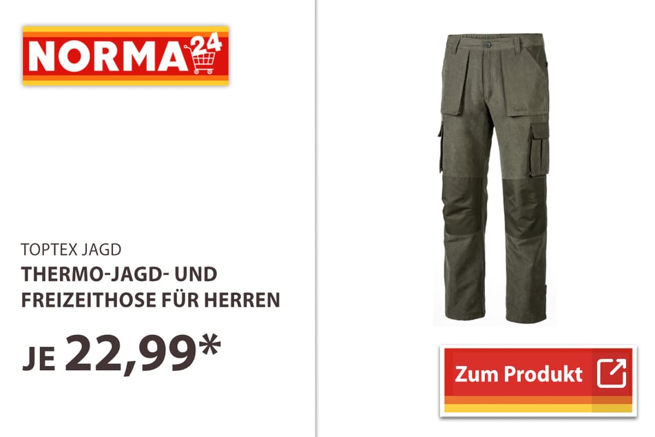 Zu den Highlights gehören Thermo-Jagd- und Freizeithosen für 22,99 Euro*, Werkzeugkoffer für 74,99 statt 129 Euro* und Kochtopf-Sets für 59,99 statt 129 Euro*.