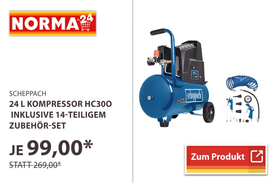für 22,49 statt 24,99 Euro* 24 l Kompressor inklusive 14-teiligem Zubehör-Set