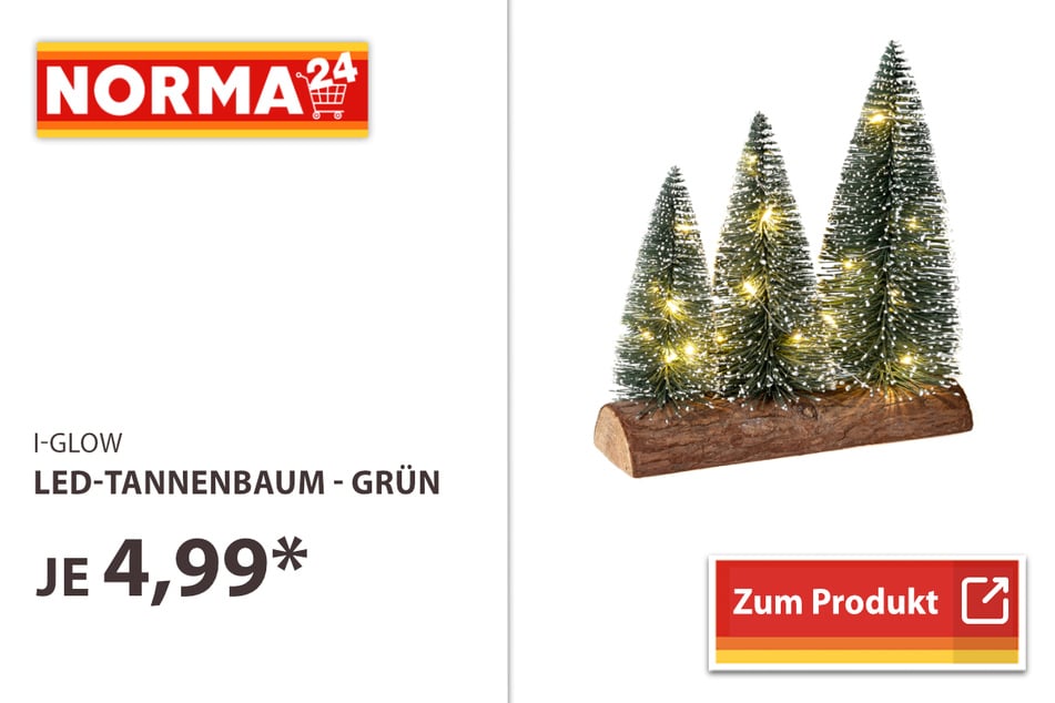 Einen Blick wert sind LED-Schwibbogen Sets für 14,99 Euro* und LED-Tannenbäume für 4,99 Euro*