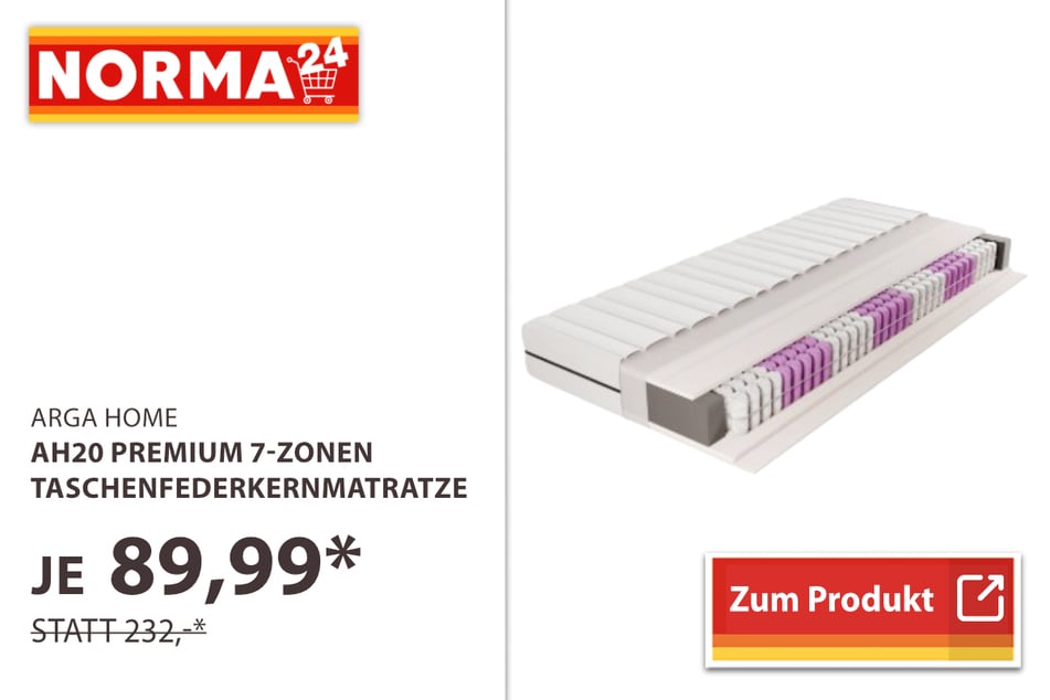 Die Premium 7-Zonen Taschenfederkernmatratze für 89,99 statt 232 Euro* überzeugt nicht nur mit grandioser Anpassungsfähigkeit an Eure Schlafgewohnheiten, sondern auch mit einem klasse Preis.