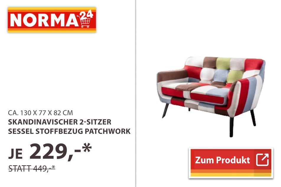 Der skandinavische 2-Sitzer Sessel für 229 statt 449 Euro* überzeugt durch farbenfrohes Design und bringt nordische Gemütlichkeit direkt in das heimische Wohnzimmer.