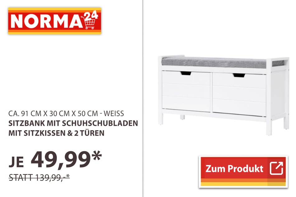 Für spürbar mehr Komfort und mehr Stauraum sorgt die Sitzbank mit Schuhschubladen für 49,99 statt 139,99 Euro*.
