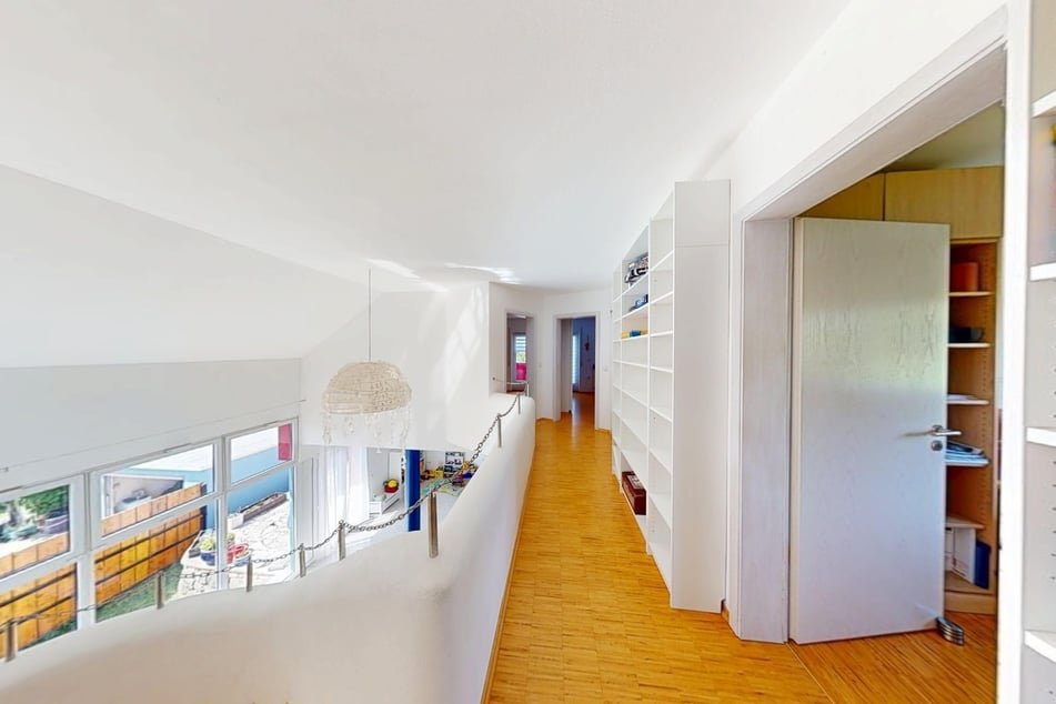 Im Dachgeschoss bietet das Haus viel Platz für das Familienleben. Eine offene Galerie, ein Schlafzimmer mit Bad en Suite (Badewanne, Dusche, WC und Waschtisch), zwei Kinderzimmer, ein Büro sowie ein weiteres Badezimmer mit Dusche und WC sorgen für Komfort im Alltag.