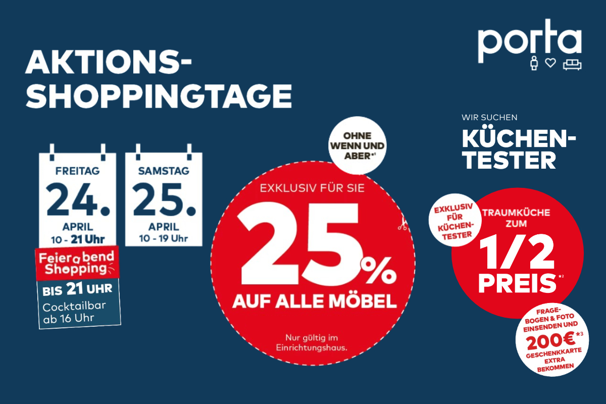 Aktions-Shoppingtage bei porta am Freitag (24.4.) und Samstag (25.4.)