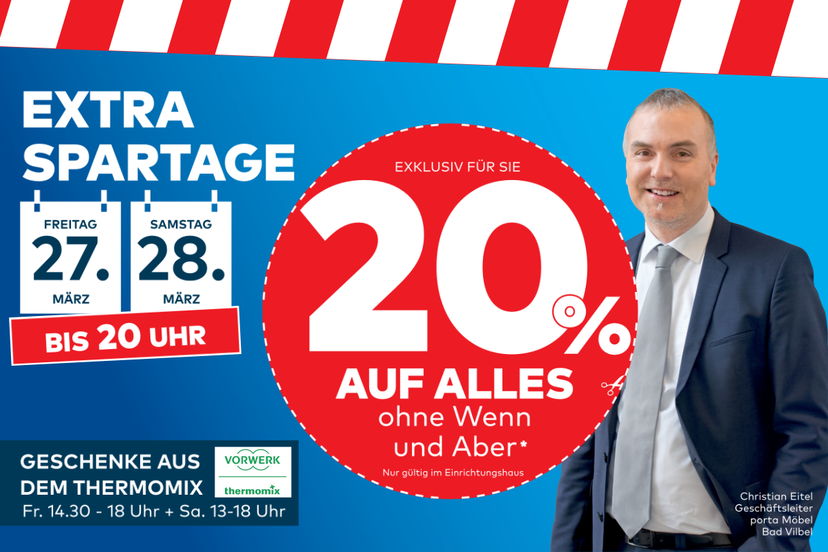 Extra Spartage bei porta Bad Vilbel am Samstag (28.3.) mit 20 Prozent auf alles