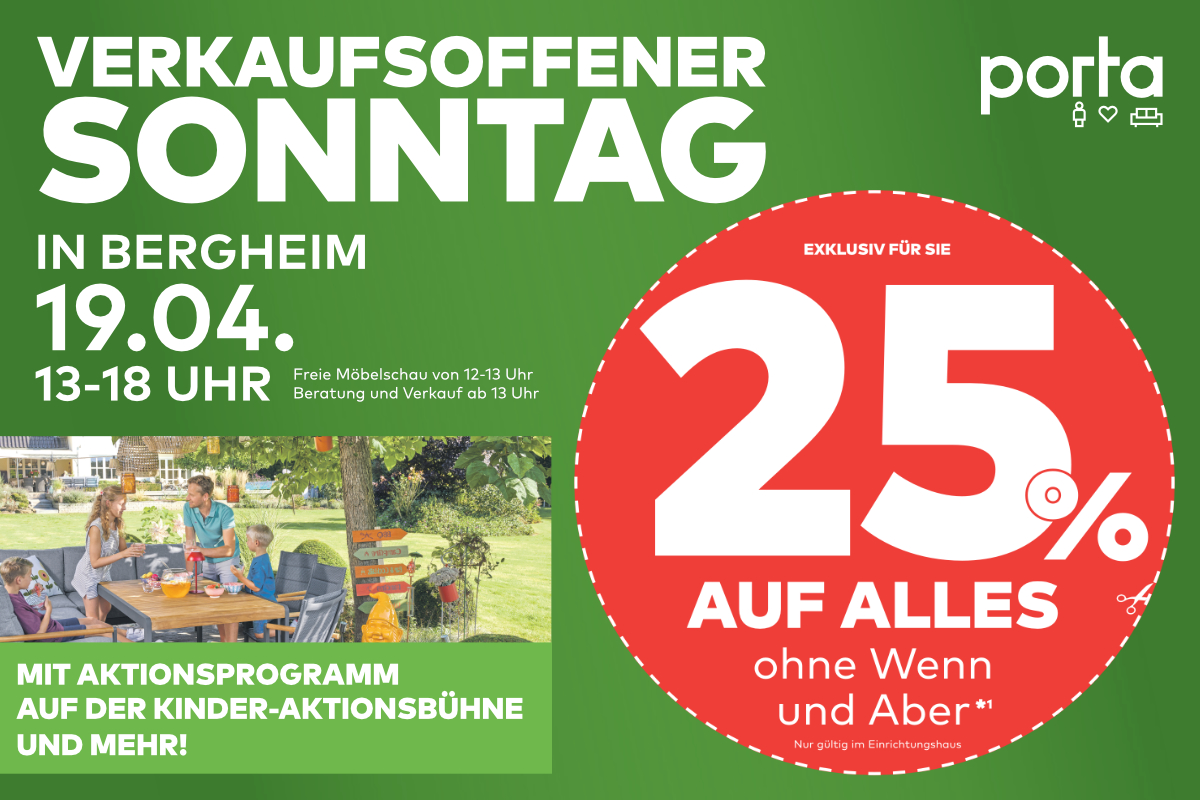 Aber Achtung: Die Rabatt-Aktion gilt nur am verkaufsoffenen Sonntag (19.4.) und bei porta Bergheim.