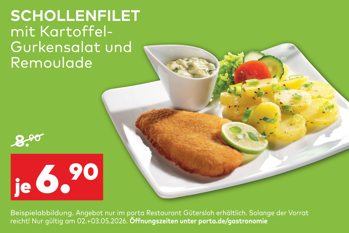 Darunter bekommt Ihr mit diesem Coupon (siehe Bild) das Schollenfilet mit Kartoffel-Gurkensalat und Remoulade für je nur 6,90 statt 8,90 Euro.