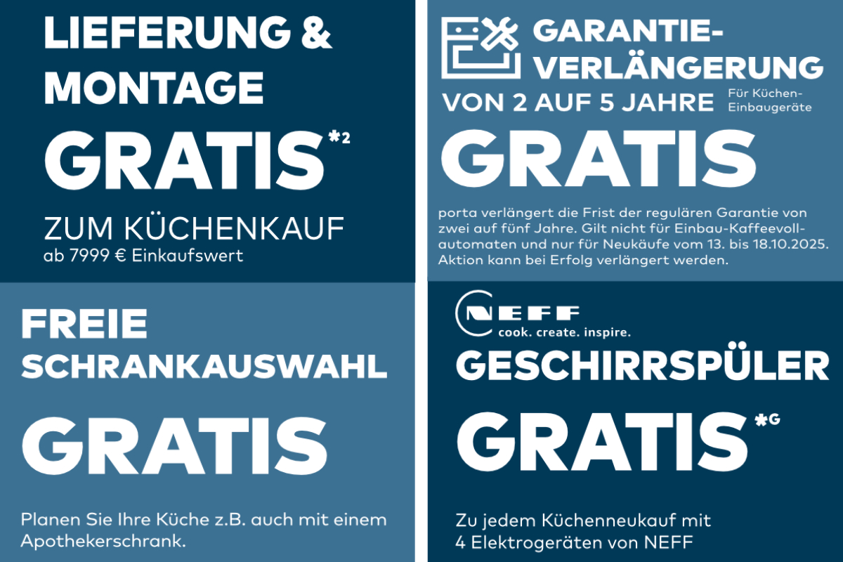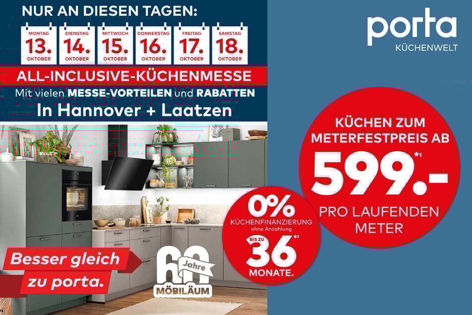 Wichtige Info: Die Küchen-Aktionen sind nur bis Samstag (18.10.) in den porta-Märkten in Hannover-Altwarmbüchen und Laatzen aktiv.