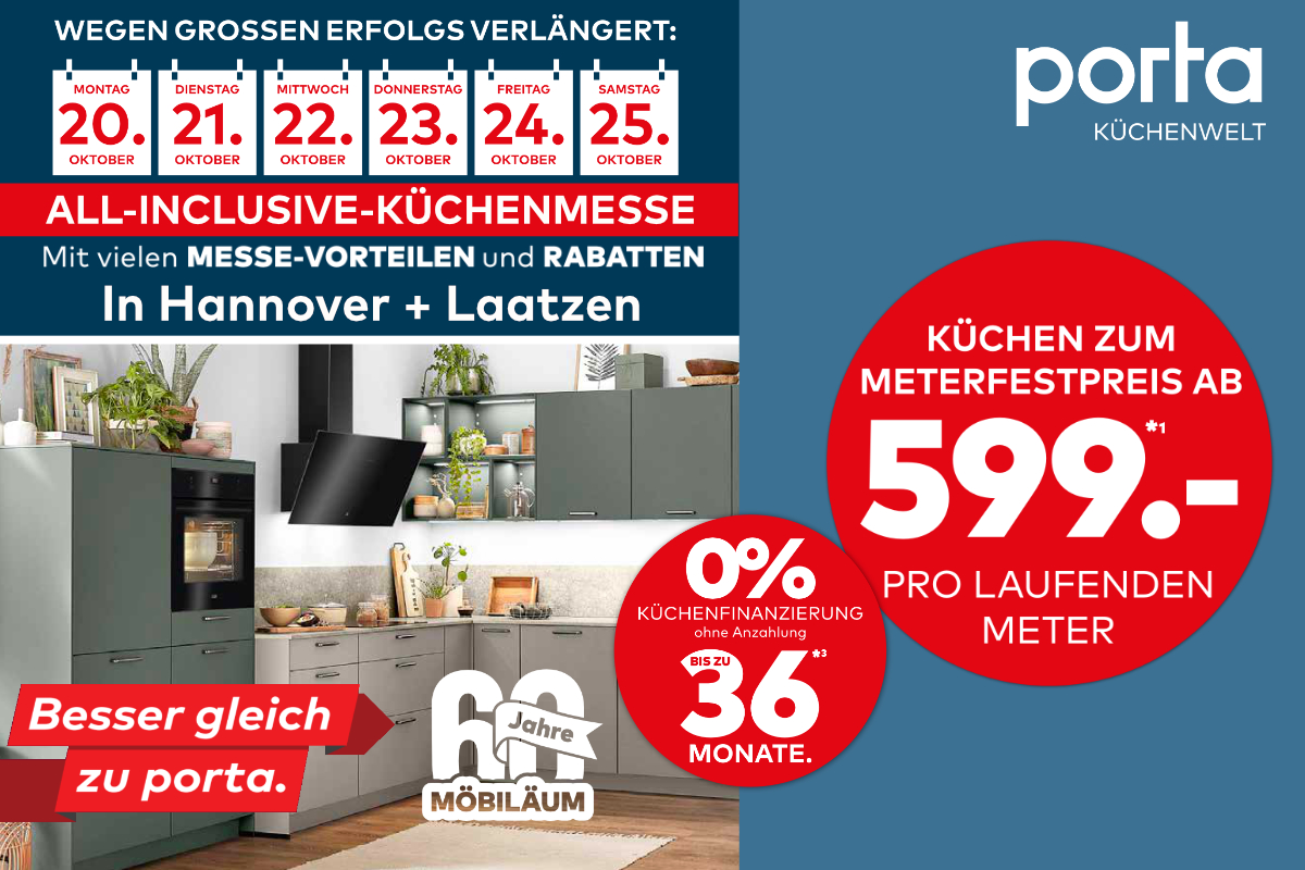 All-Inclusive-Küchenmesse bei porta Hannover und Laatzen wird verlängert
