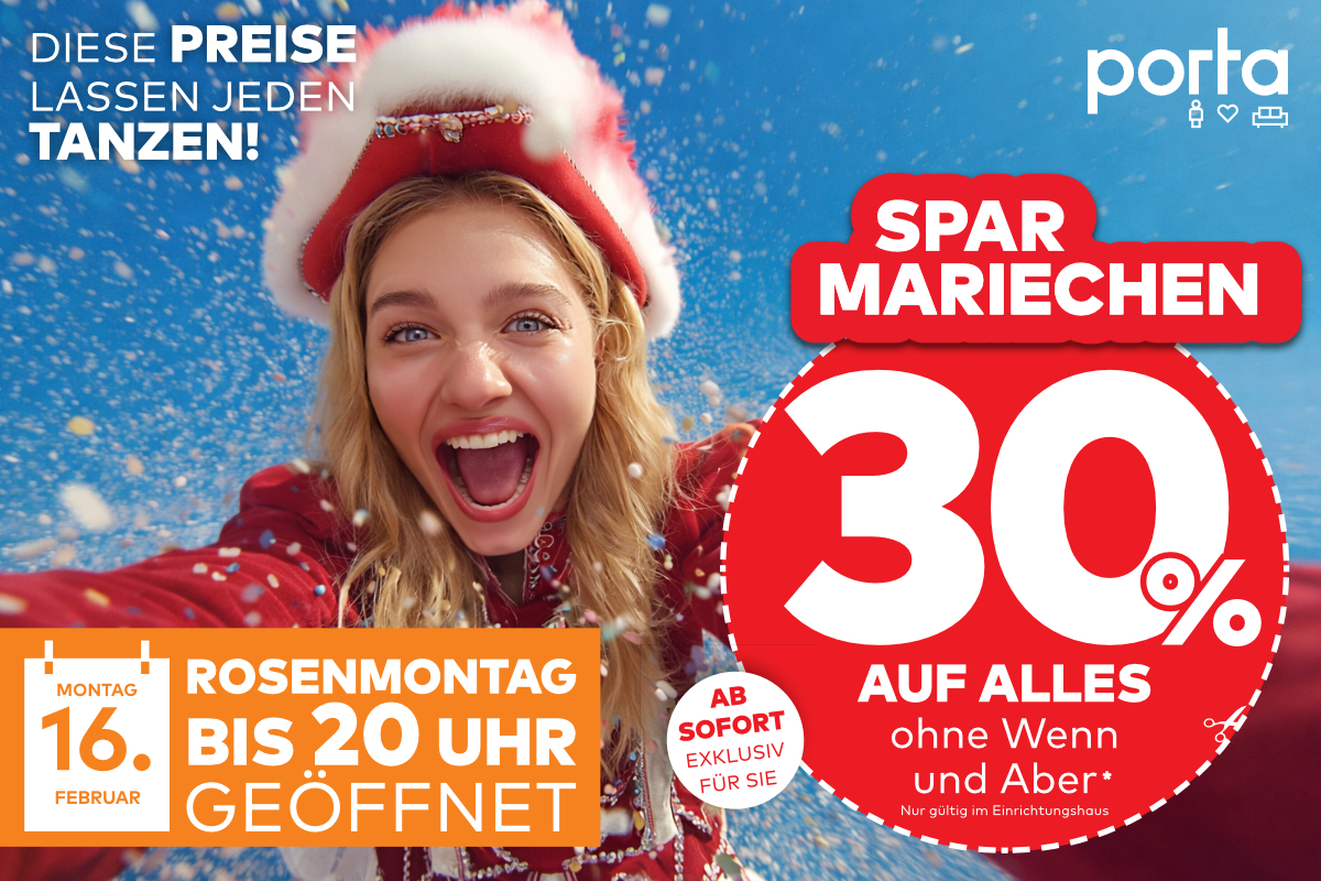 Krasse Angebote bei porta Rheinland bis Rosenmontag (16.2.)