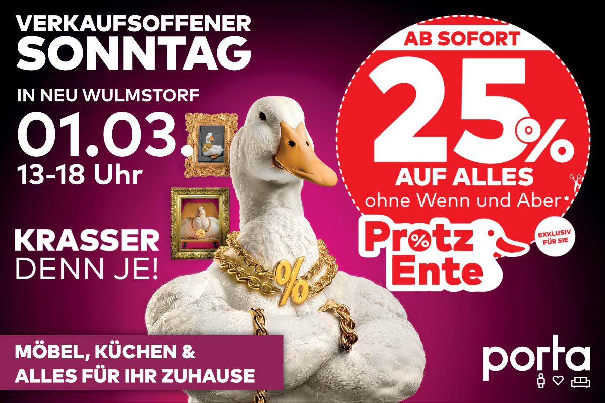 Wenn die ProtzEnte Einzug bei porta Neu Wulmstorf hält, wird es richtig spannend für alle Kunden!