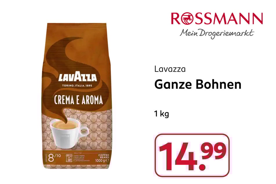 Lavazza Ganze Bohnen für 14,99 Euro sind ein perfekt abgestimmter Mix aus Arabica und Robusta, der mit seiner dichten Crema und intensiven Schoko-Nuss-Aromen überzeugt. Ideal für Espresso oder Milch-Kaffee geeignet.