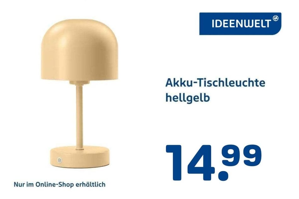 für 3,59 Euro - Akku-Tischleuchte hellgelb