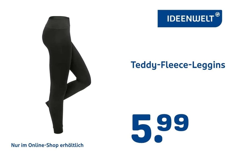 Auch in der Ideenwelten warten viele Highlights: Mini-Waffeleisen für 9,99 Euro, Akku Pilzleuchten für 7,99 Euro und Teddy-Fleece-Leggins für 5,99 Euro.