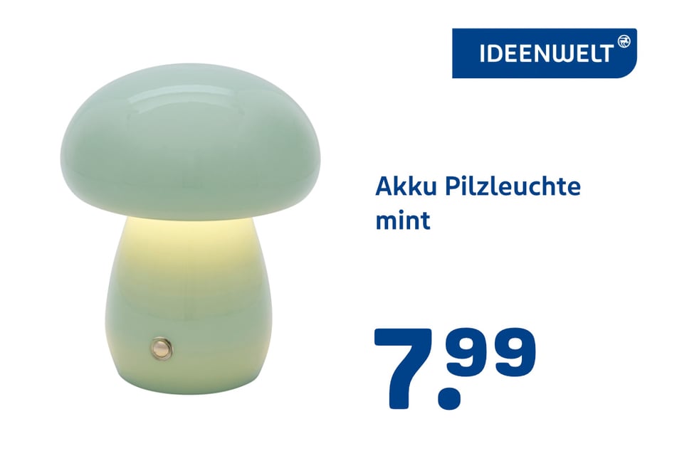 Passend zur aktuellen Jahreszeit gibt's Akku Pilzleuchten in mint oder rostbraun für 7,99 Euro.