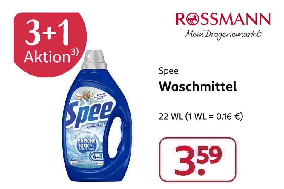3) 3 x Spee und/oder Weißer Riese Waschmittel je 18 – 22 WL kaufen – 1 x gratis dazu erhalten. Keine Barauszahlung möglich. Bitte selbst auswählen.
